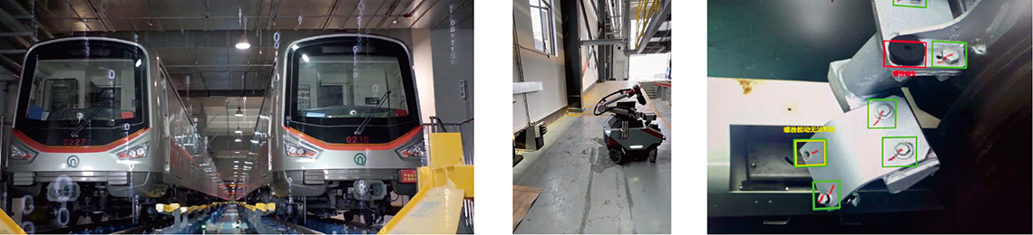 高铁列车巡检机器人是我司联合客户针对高铁列车巡检需求定制开发的智能装备,主要应用于高铁车辆 段、检修库的列车智能化运维场景,核心目标是通过对列车车体、底盘等关键区域的全流程自主巡检,为高铁安 全高效运营提供技术支撑。机器人采用先进SLAM自主导航方案,具备无预设轨道环境下的精准地图构建与最 优巡检路径自主规划能力,可灵活穿梭于各待检区域,实现对复杂多变检修场景的实时适配。检测系统集成六 自由度机械臂、高清视觉采集模块、红外热成像检测模块及激光雷达感知模块,可对列车底盘转向架构架、铁轮 磨耗、轴箱轴承、悬挂系统连接件、制动管路等核心部件进行全方位精确检测;基于深度学习等智能算法,能够 对裂纹、变形、松动、渗漏、密封失效、温度异常等典型故障隐患进行精准识别与预警。