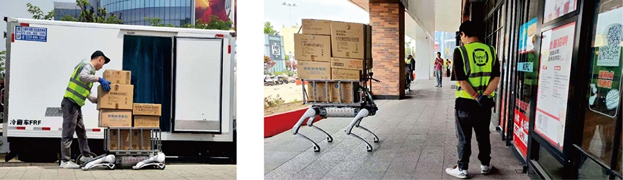 我司与客户合作开发的跟随搬运机器狗,是工业车间、仓储物流的"智能搬运伙伴"。它集自主跟随、智能避 障、高效搬运于一体,为物料转运提供灵活自动化方案。依托多传感器融合技术,机器狗可精准识别人体并无缝 跟随,无需操控即可随行转运;搭配先进环境感知系统,能快速避障规划路线,保障搬运安全。其承载能力适配 多场景,可装载工具、物料箱等,替代人工完成重复搬运,尤其适用于车间转运、仓储补货。产品支持一键启动、 模式易切换,助力企业降低劳动强度、提升周转效率,实现生产降本增效。